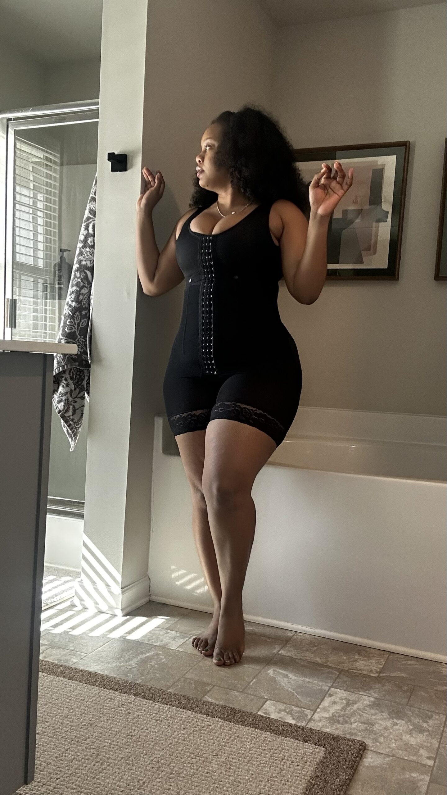 Our “Cat Island Cutie Super Snatcher” is a full body faja with built in bra. It is perfect if you’ve had surgical or non-surgical procedures, postpartum, bridal party, special occasions, weight loss or for a full-body everyday wear garment. There is maximum compression to the mid-section and waist but no compression to the butt. This faja provides comfort while snatching your waist and projecting your curves. It is definitely a MUST HAVE!