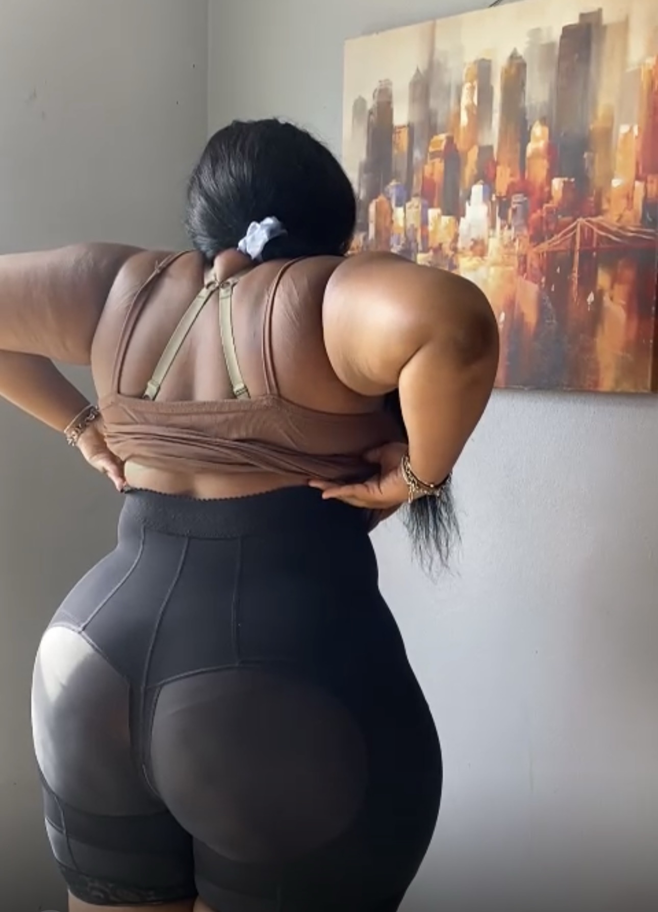 • Non-slip silicone straps inside the lace hem, which prevents the faja from rolling